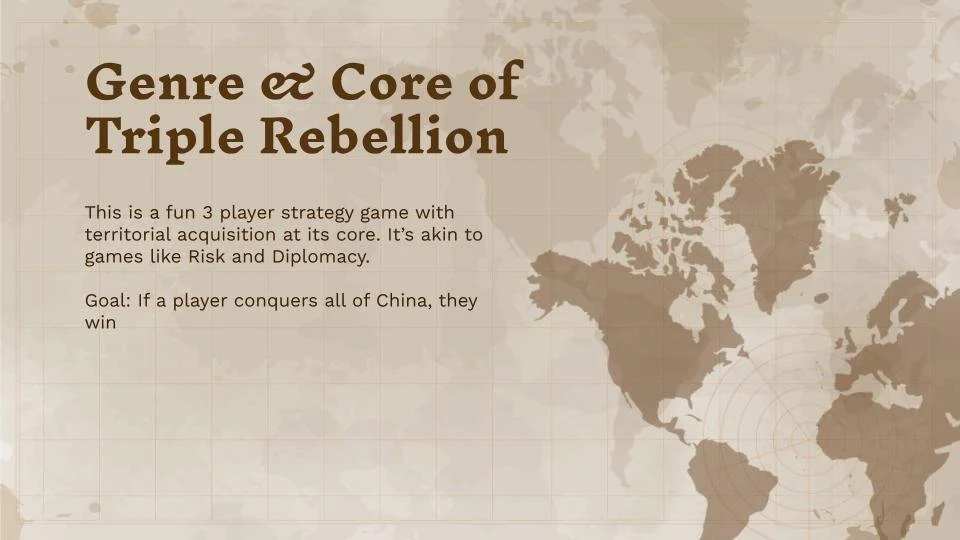Triple Rebellion Mar 13 Written By olivia russin Rules of the gameGame Prototype Link. Note: this is olny a mod on tabletop playground. First PlaytestPart 2 Final Playtest game design olivia russin